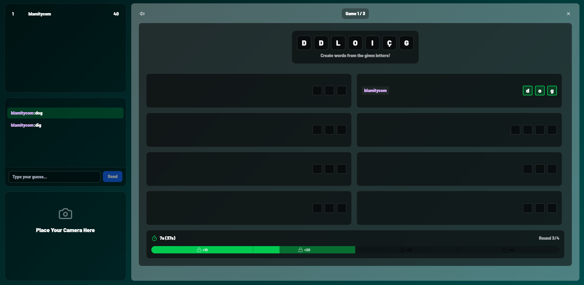 Race against your chat to unscramble words. Fast-paced, competitive word chaos for your stream.